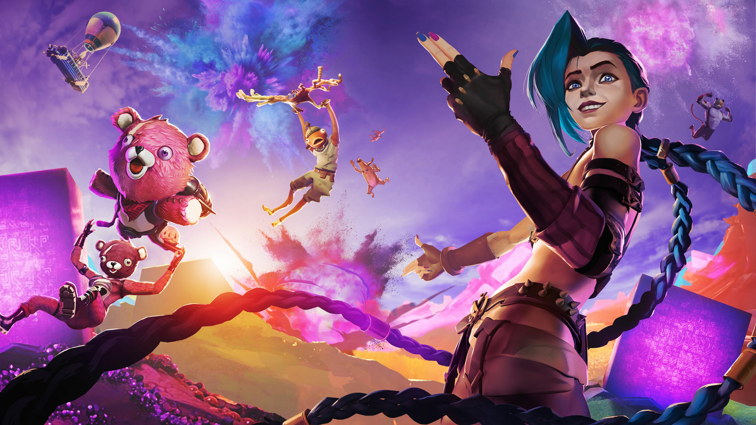 As part of a larger integration into Fortnite, we designed this loading screen depicting the character Jinx making her first appearance in the battle royale.